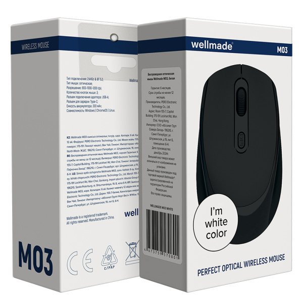 Беспроводная мышь Wellmade M03 Белая