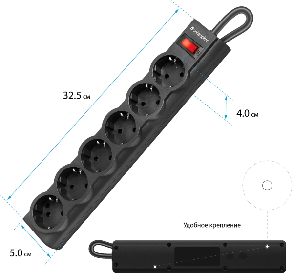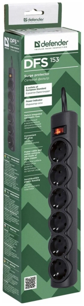 Сетевой фильтр Defender DFS 153 (99495) 3 м Черный
