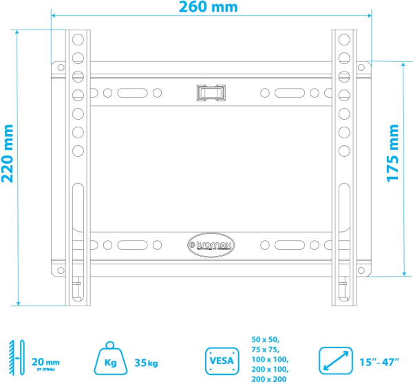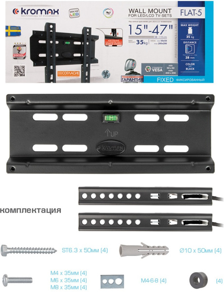 Кронштейн для телевизора Kromax FLAT-5 (15-47") Черный