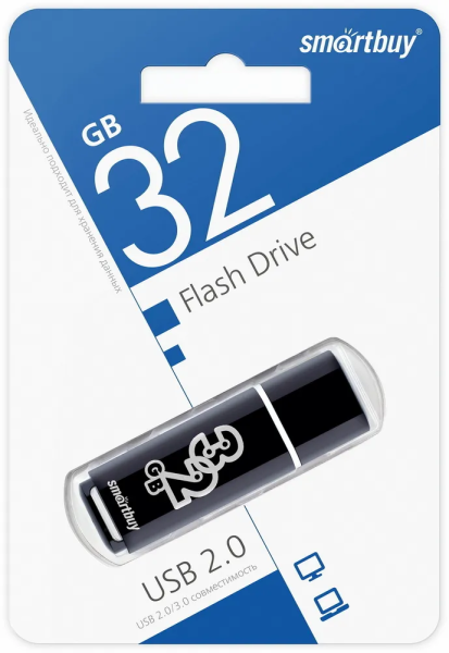 USB Флеш-накопитель Smartbuy Glossy series USB 2.0 32GB Черный (SB32GBGS-K)