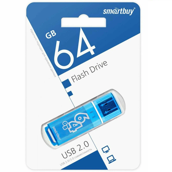 USB Флеш-накопитель Smartbuy Glossy series USB 2.0 64GB Синий (SB64GBGS-B)